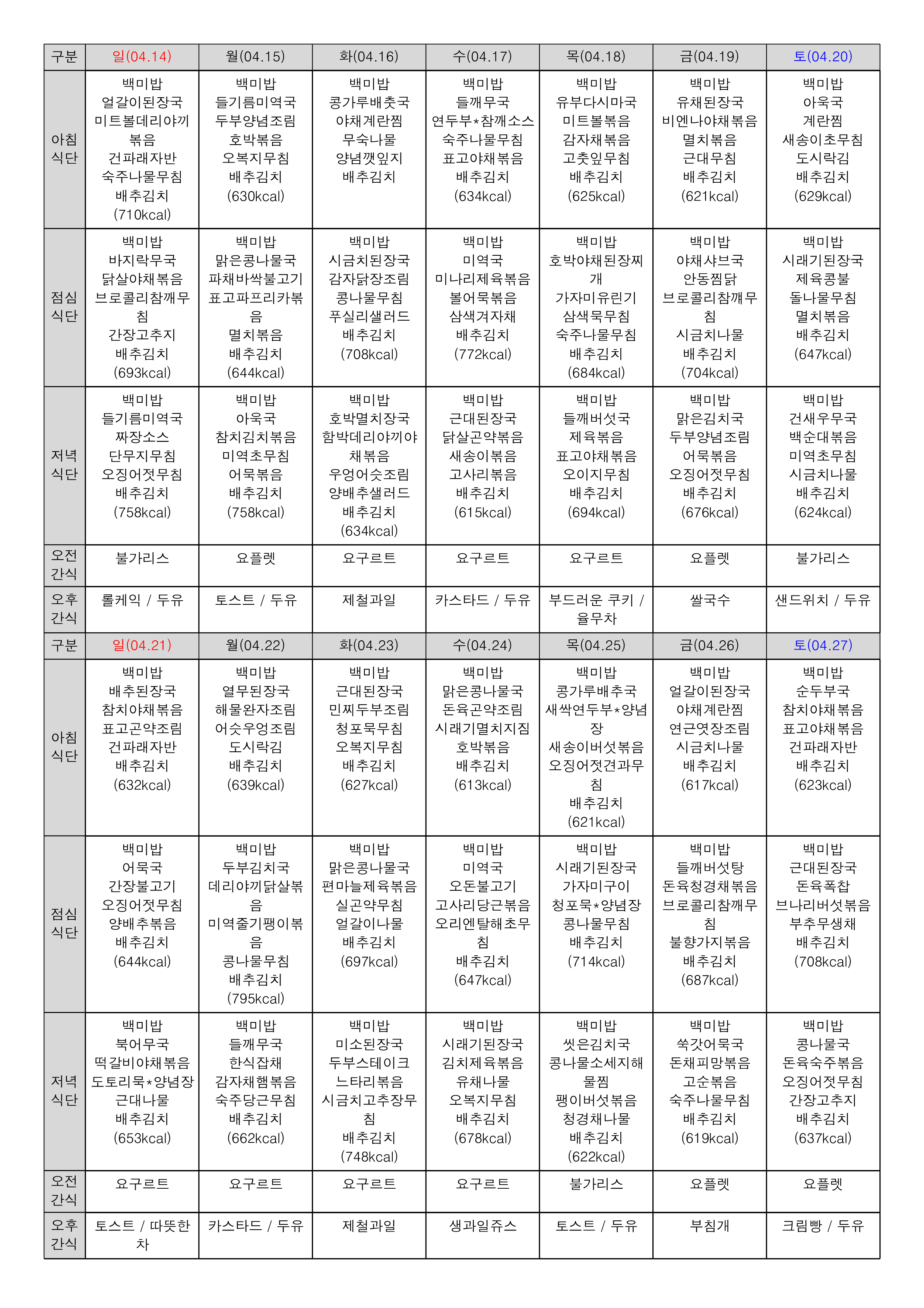 4¿ù ½Ä´ÜÇ¥ ÀÔ´Ï´Ù ^^