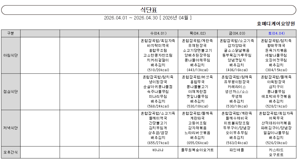 26³â 4¿ù ½Ä´ÜÇ¥